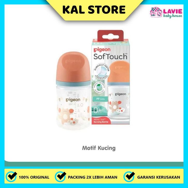 Pigeon Botol Bpp Wide Neck 160Ml Kucing W/ Softouch Nipple - Lavie Baby House / KAL STORE / USIA / SUSU KEPERLUAN IBU AN