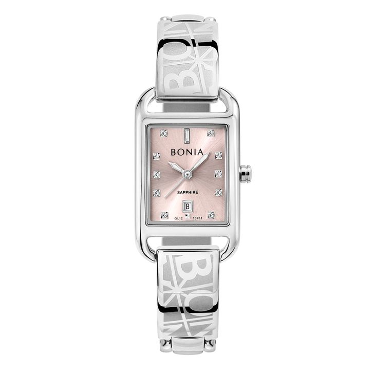 Jam Tangan Wanita Bonia Monogram Pink Dial Stainless Steel Analog B10751-2377 Original
