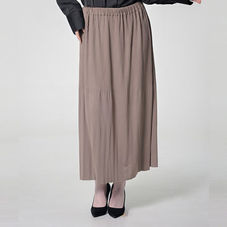 TERMURAH Hanna Rok Plisket Panjang Muslim Hijab A Shape Premium Tidak Menerawang Women Skirt Coklat 030123 ifomnmn