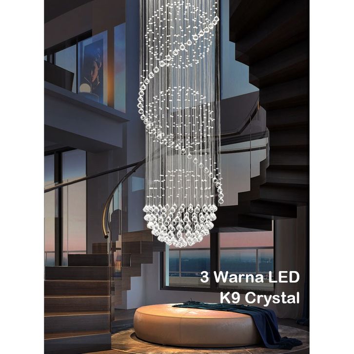 ⭐3Warna& H=300cm⭐Mewah Lampu Gantung Kristal Tangga Diameter 80cm Villa Lampu Rumah Langit-langit Lampu R Tamu ly