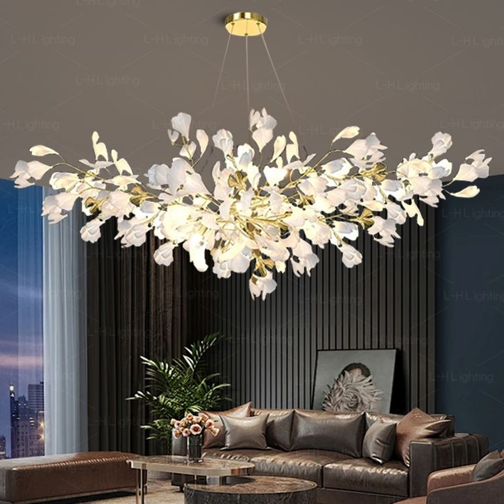 L-H Lighting - Lampu gantung seni ginkgo biloba mewah M0Dern Lampu langit-langit tinggi Bola lampu 3 warna Cocok untuk