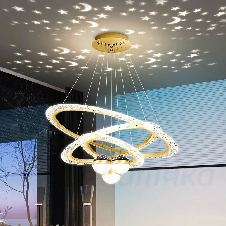 Lampu Gantung R Tamu 80+60+40cm Lampu Kamar Tidur 3 Ring LED Lampu Gantung Void Panjang 3 Warna 58watt Chandelier Proye