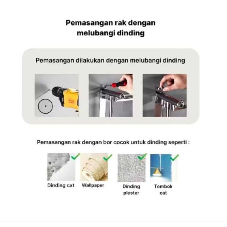 Rak Kamar Mandi 3 Susun Stainless Rak Dinding Kamar Mandi Tempat Sabun Bor