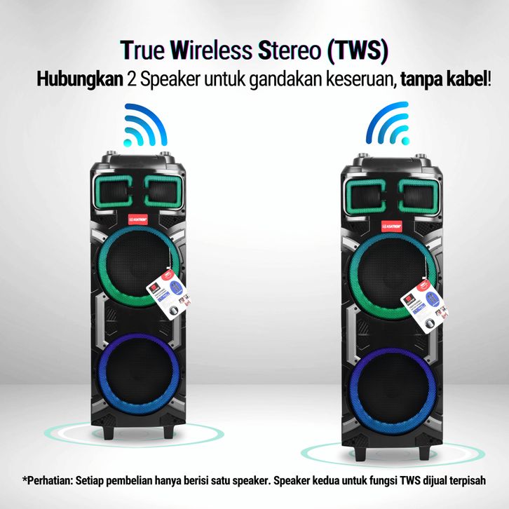 Asatron Ultimate Dual 10 Inch Bluetooth Wooden Box Party Speaker with 2 Wireless Mic