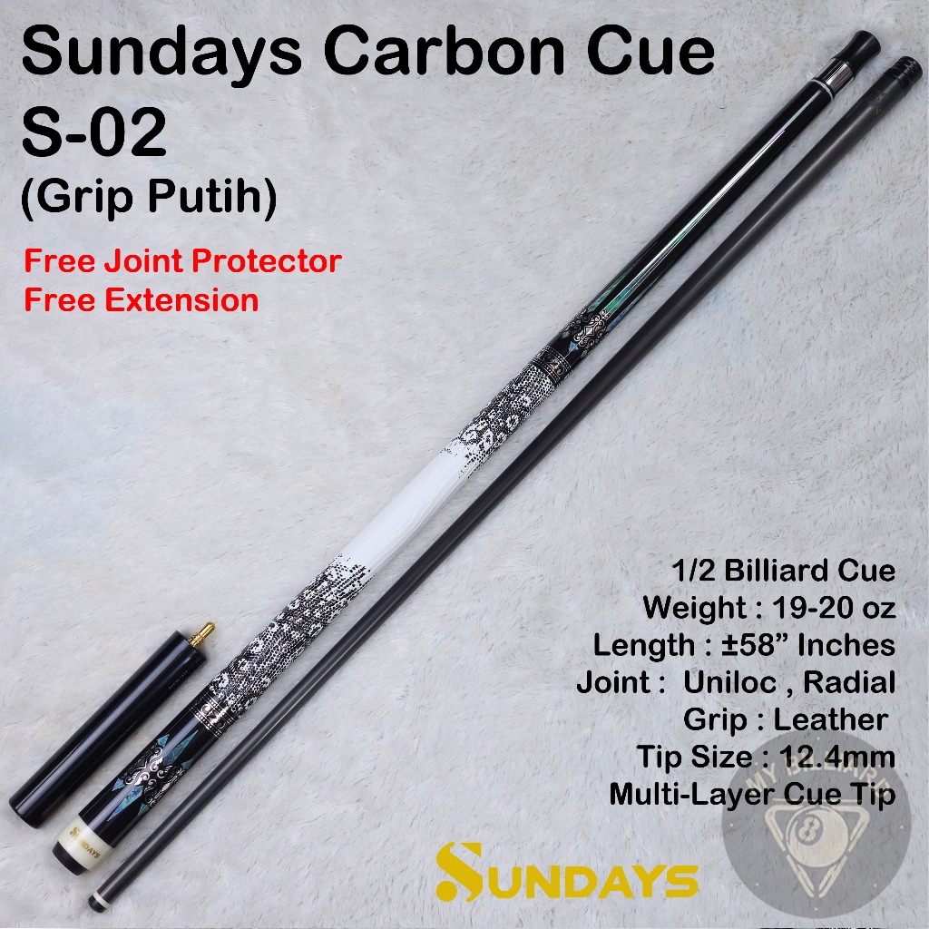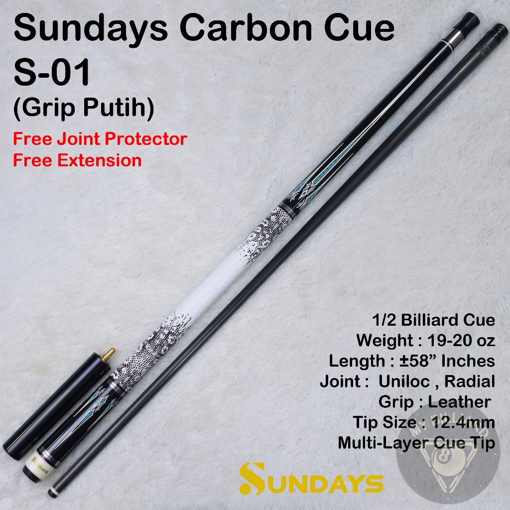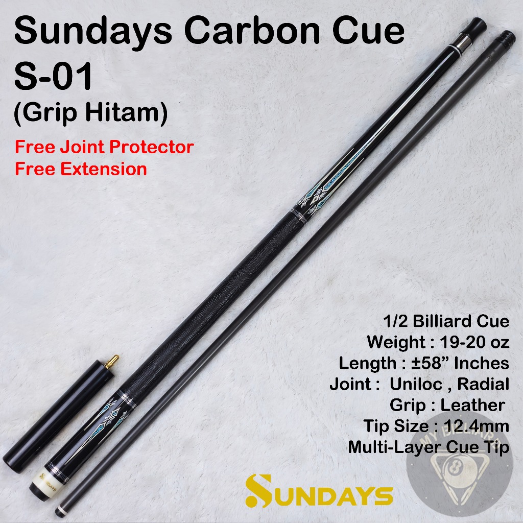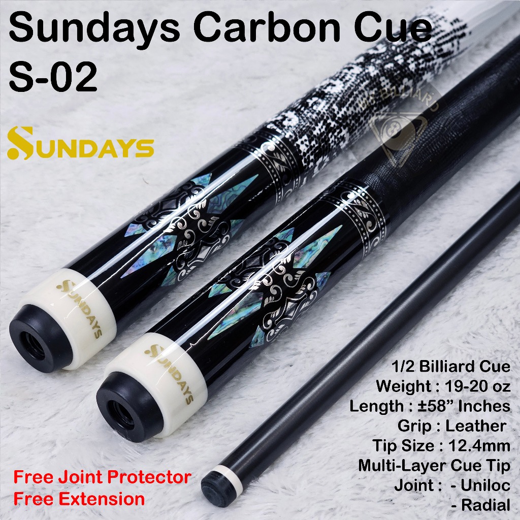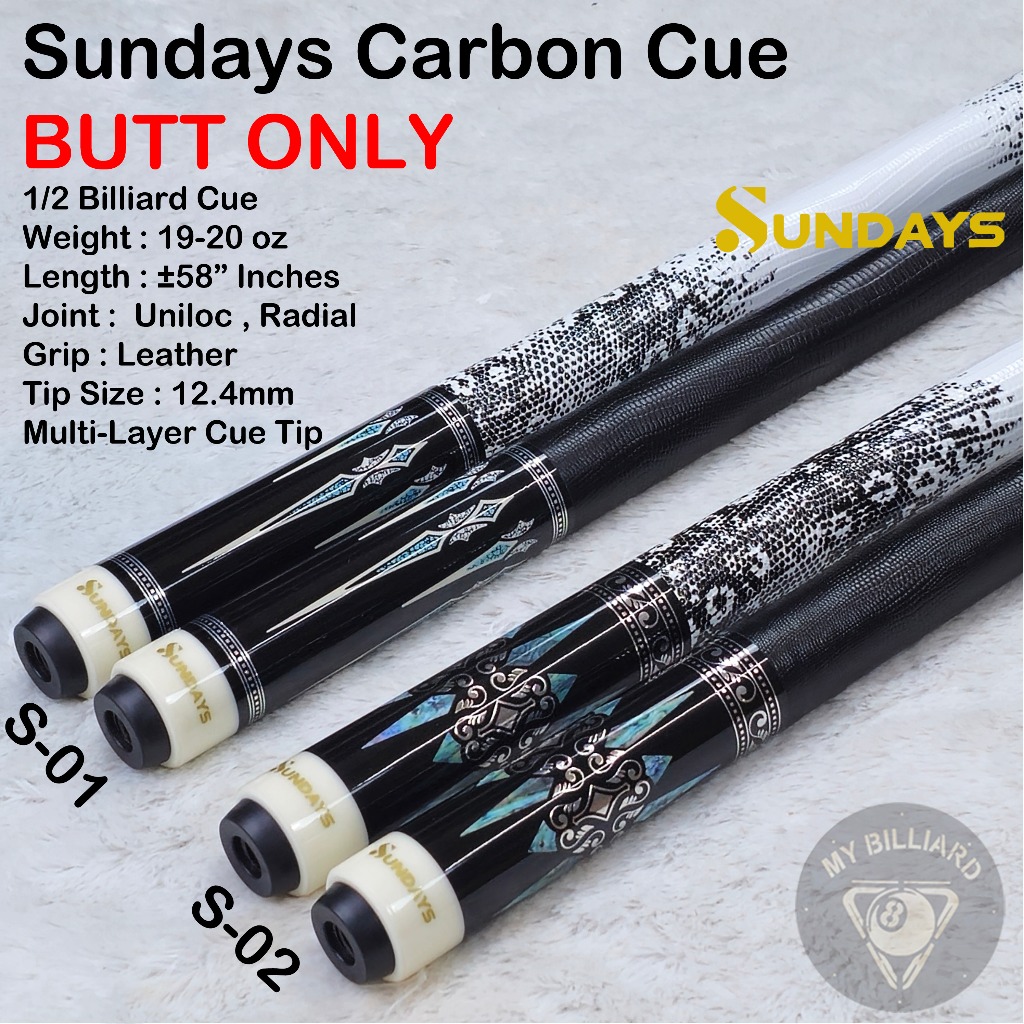 SUNDAYS CARBON CUE 12.4MM STICK BILLIARD RADIAL 3/8-8 UNILOC -STIK SHAFT CARBON BILLIAR S-01 S-02 BUTT SHAFT BILIAR