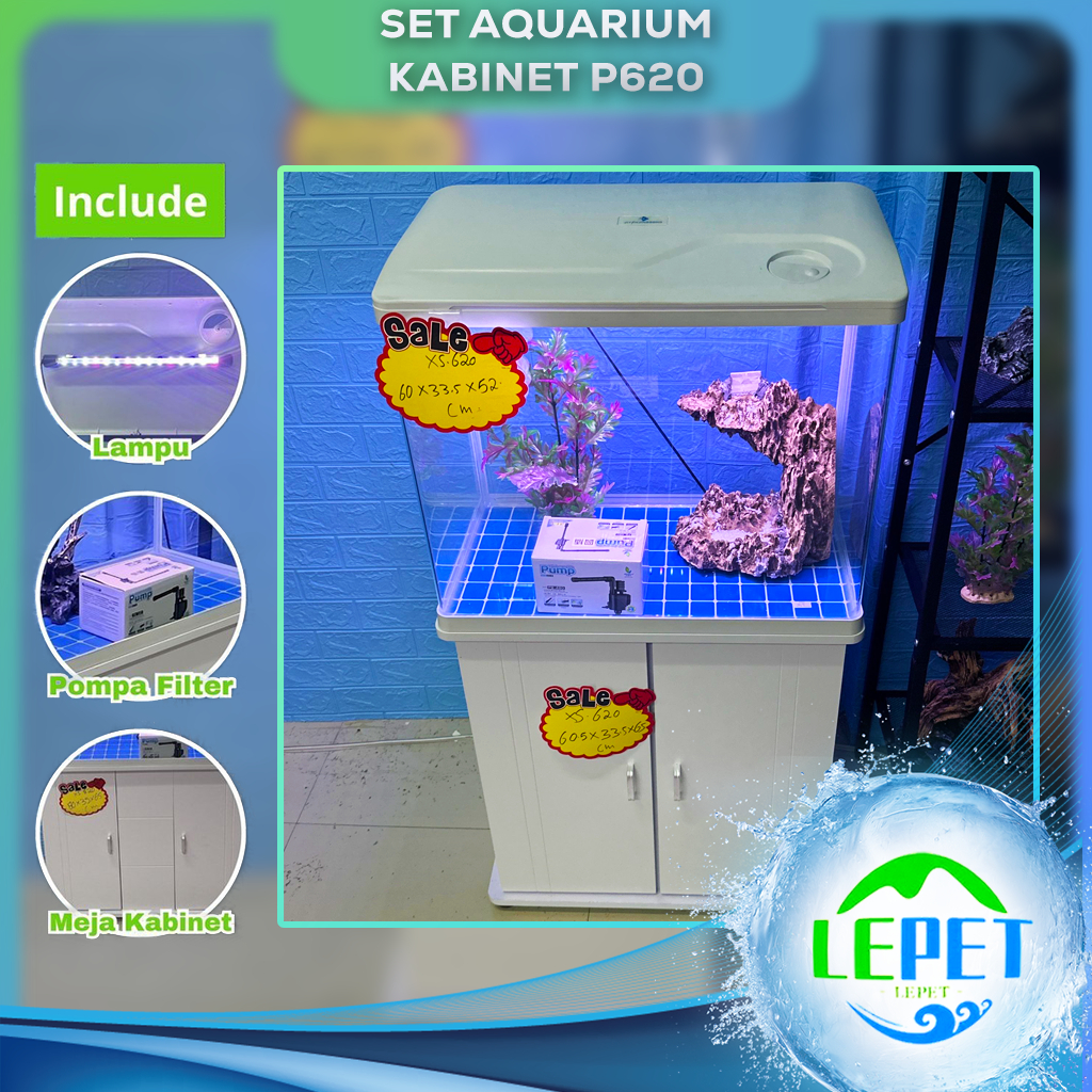 LEPET AQUARIUM PAKET MURAH DAN LENGKAP DENGAN MEJA UKURAN P620 / AQUARIUM SET CABINET