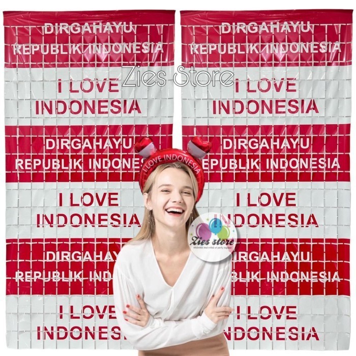 [ DM11 ] Tirai Rumbai Foil Kotak Dirgahayu RI 17 Agustus Merah Putih