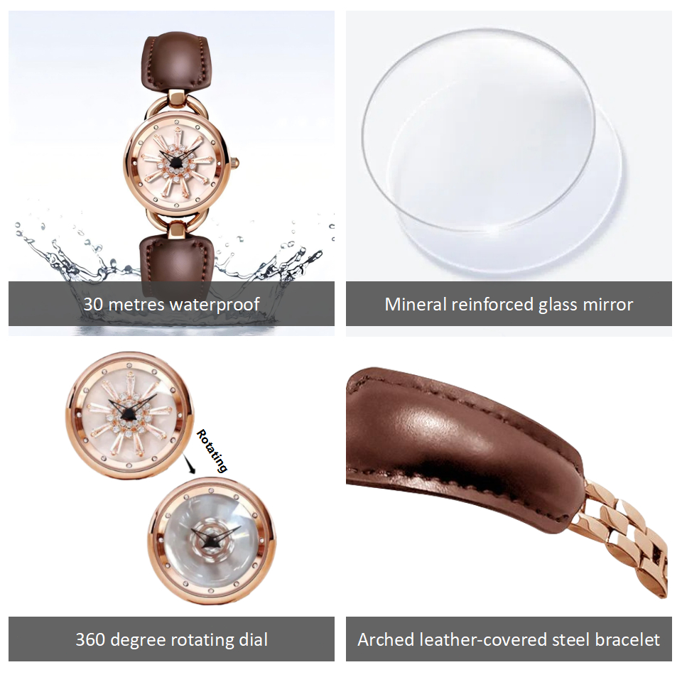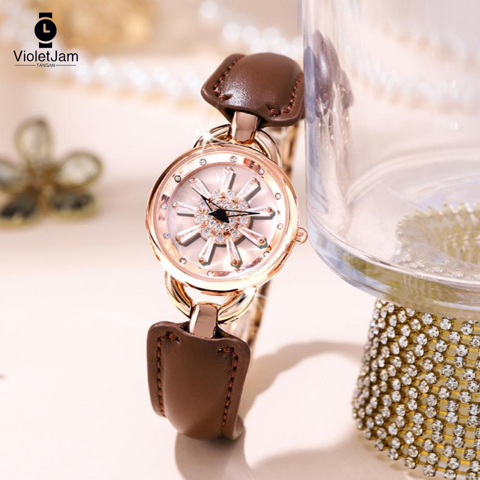 JAM TANGAN FASHION WANITA STRAP KULIT RANTAI SIMPLE MEWAH ANTI AIR JAM TANGAN BERPUTAR