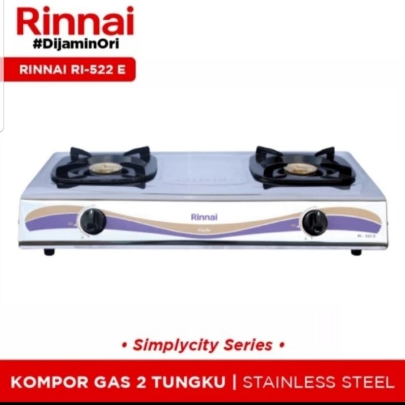RINNAI : RI-522E KOMPOR GAS 2 TUNGKU API EKONOMIS RI 522 E BODY STAINLESS