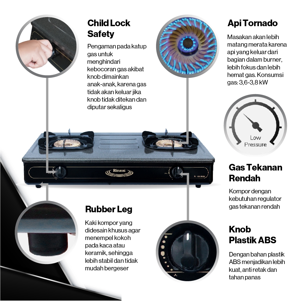 Rinnai - RI-602-BGX Kompor Gas 2 Tungku-Terdapat Api Lilin-Kompor Gas-Kompor-Original-New Arrival-Rinnai