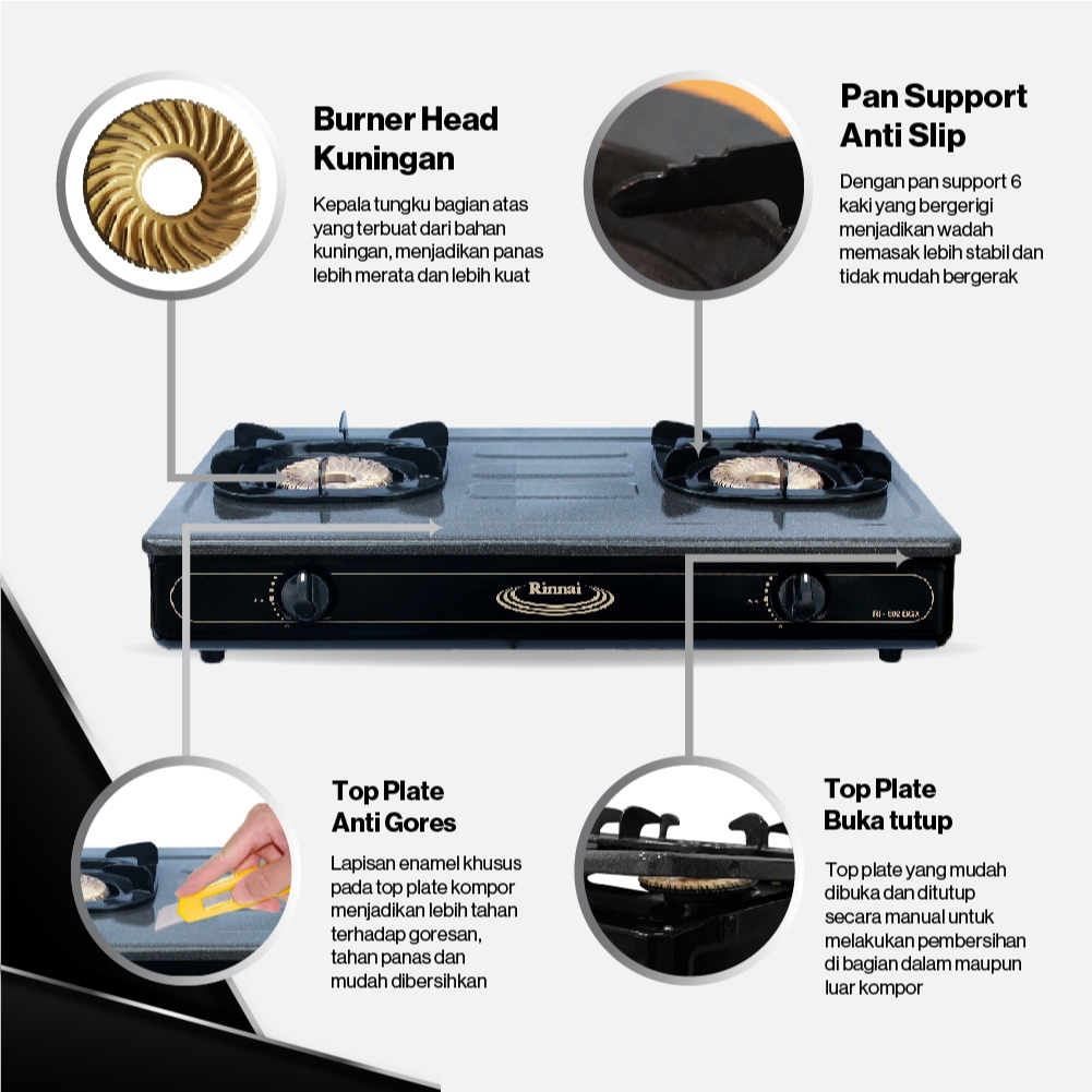 Rinnai - RI-602-BGX Kompor Gas 2 Tungku-Terdapat Api Lilin-Kompor Gas-Kompor-Original-New Arrival-Rinnai