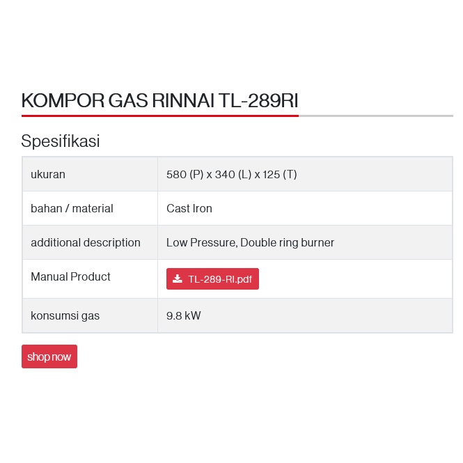 KOMPOR PORTABLE 1 TUNGKU RINNAI TL 289 RI BESI COR