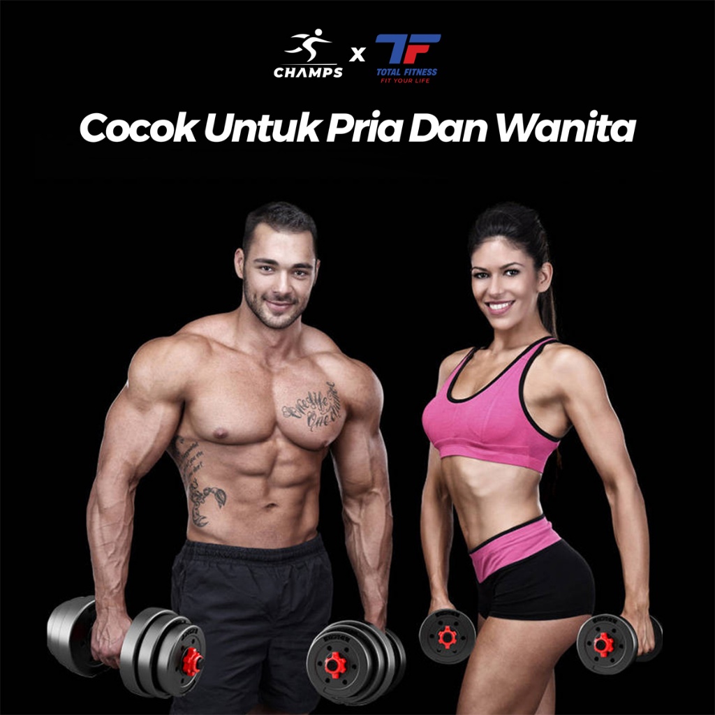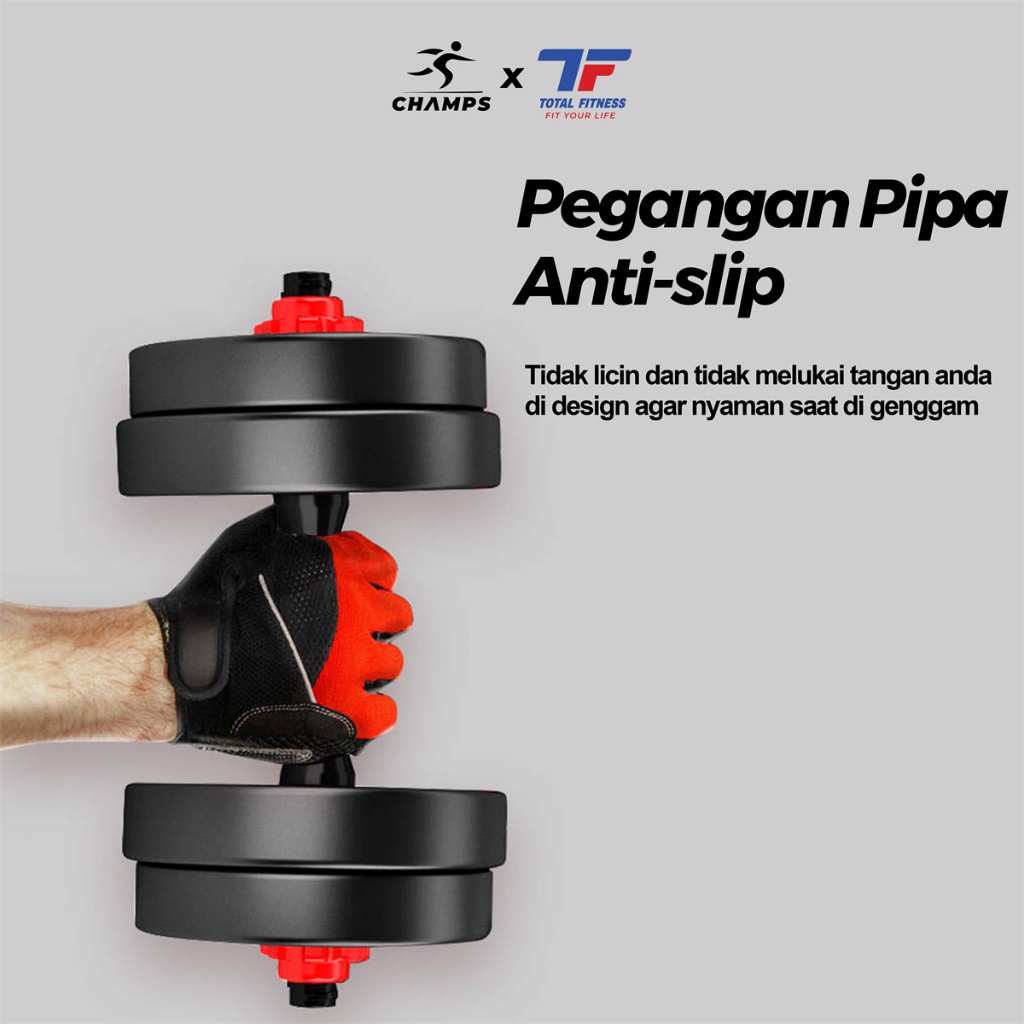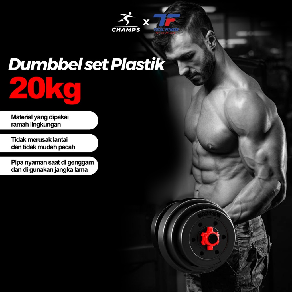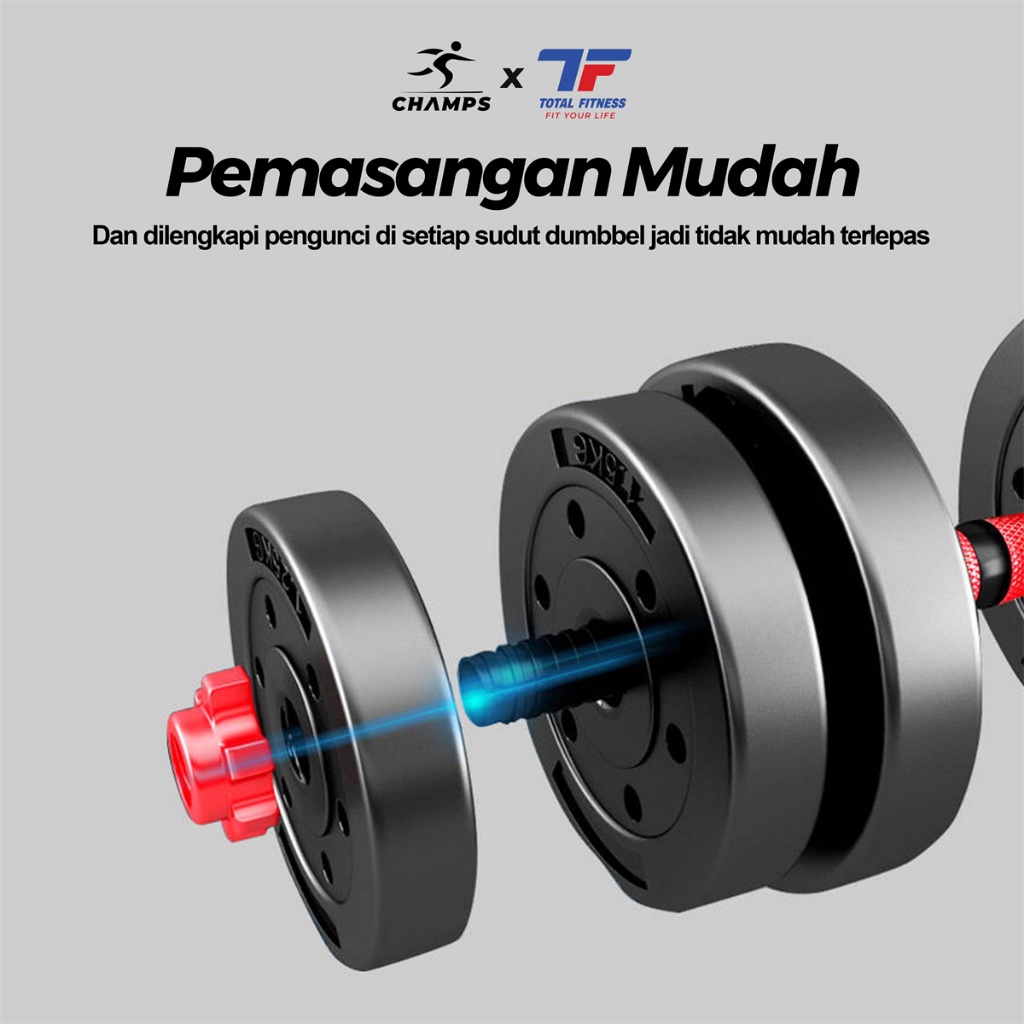 Champs Dumbell Barbell Set 10-30KG Adjustable Dumbbell Set PVC Peralatan Kebugaran Olahraga Fitness
