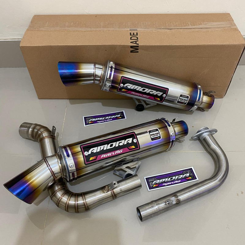 KNALPOT SAMLONG HALF BLUE ORIGINAL AMORA RACING MOTOR VARIO BEAT SCOOPY MIO NMAX AEROX PCX
