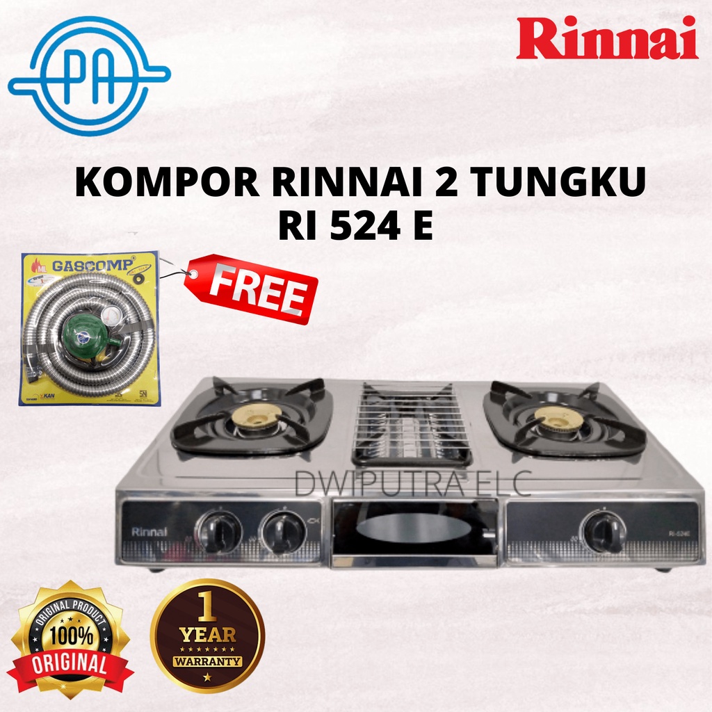 PROMO KOMPOR RINNAI RI 524 E RI524E RI 524E KOMPOR GAS 2 TUNGKU FREE SELANG REGULATOR SNI