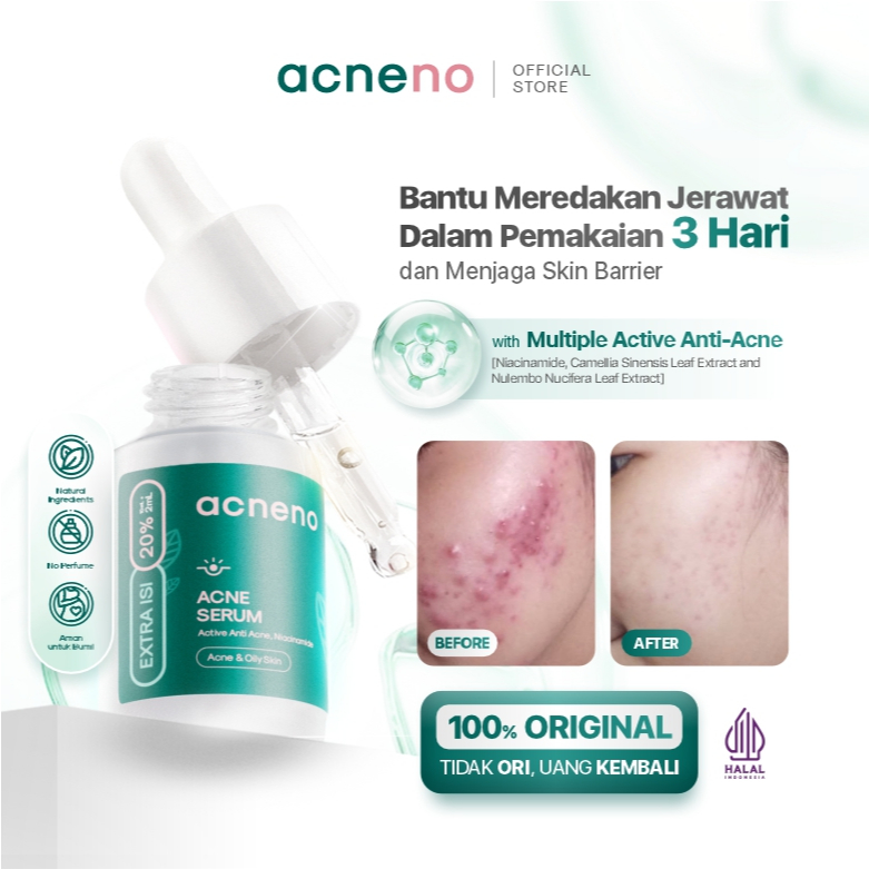 ACNENO acne Serum isi 12ml - acne Treatment 3 Hari Bantu Meredakan Jerawat Meradang | Aman Untuk Bumil & HALAL