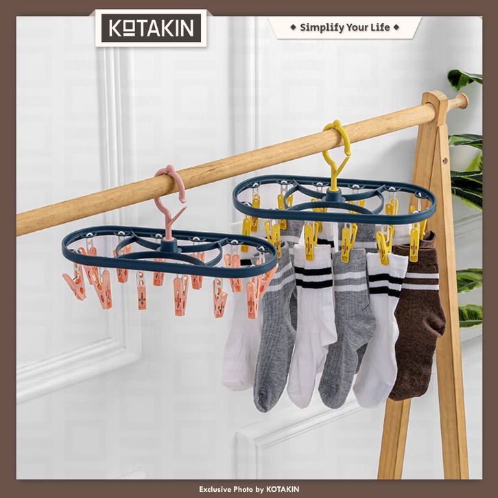 KOTAKIN Hanger Serbaguna 12 Jepit Gantungan Jemuran Baju Bayi Kaos Kaki Underwear Lipat Portable Traveling