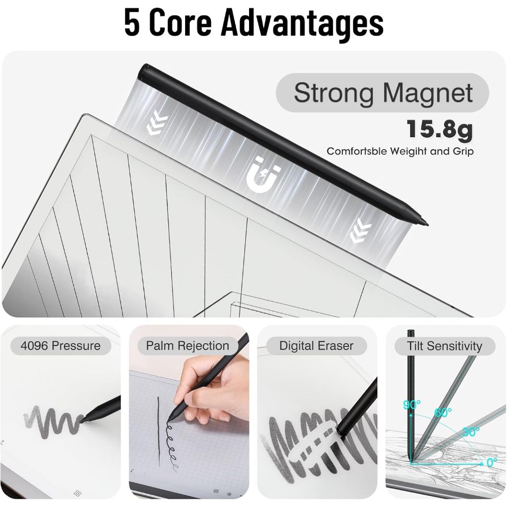 Piyoni Magnetic EMR Stylus with Eraser for Remarkable 2 Pen/Remarkable 2 Tablet Pen Replacement/Kindle Scribe/Wacom/Boox