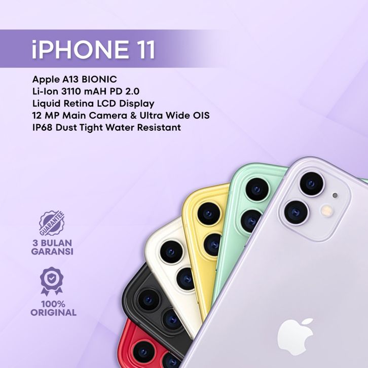 Hp iPhone IPHONE 11 EX INTER GARANSI 3 BULAN FULLSET 64GB / 128GB WARNA KUNING