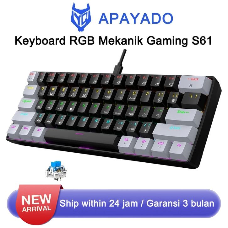 Keyboard Gaming Mechanical S61 60% Layout RGB Full Key Anti-Ghosting - Switch Blue