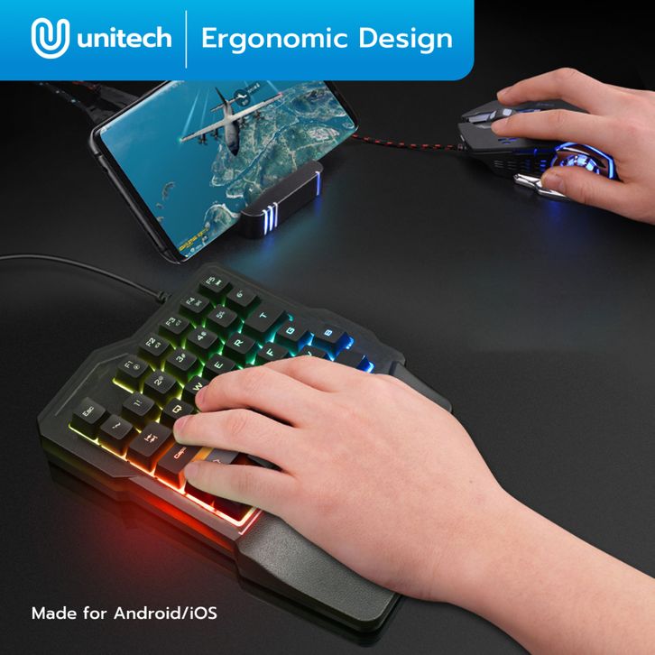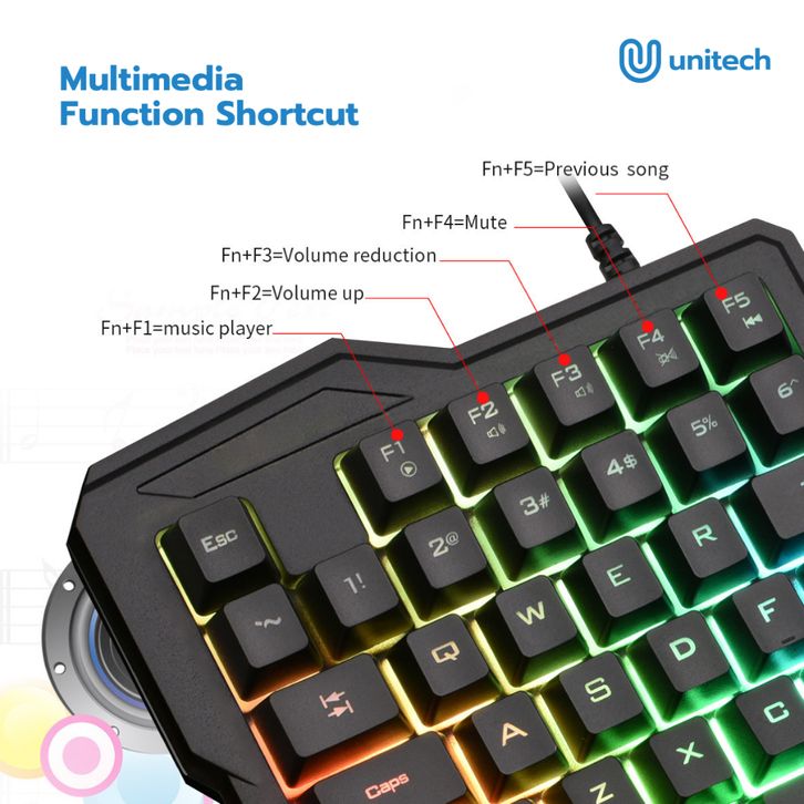 Keyboard Gaming Kabel Single Hand Unitech RGB 35 Key One Handed Membran Keypad
