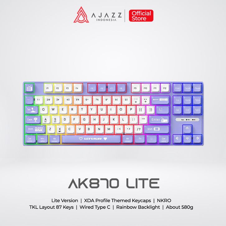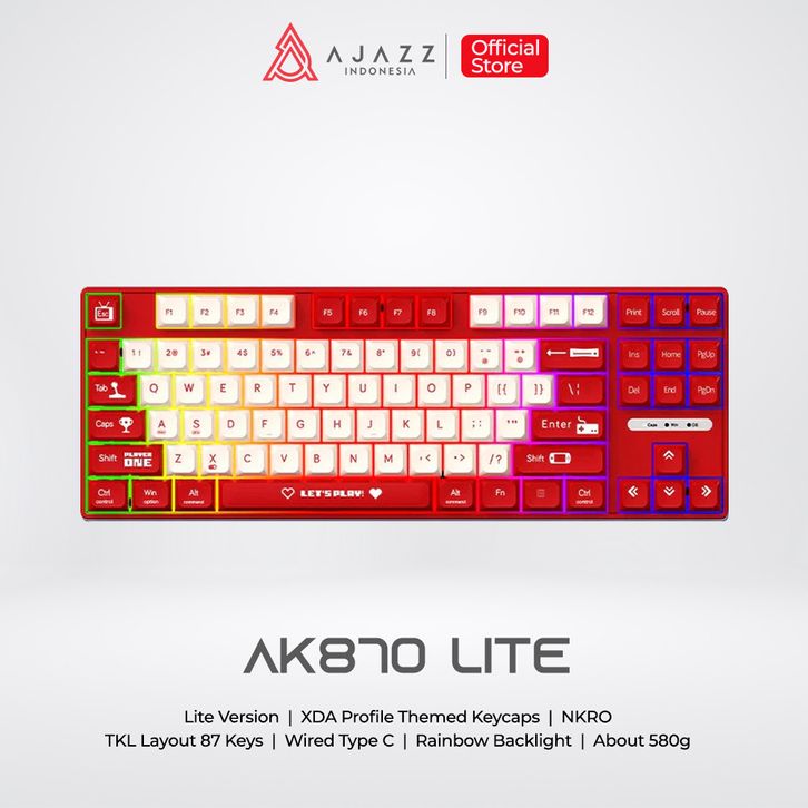 Ajazz AK870 LITE TKL Keyboard Gaming Mechanical Wired Rainbow Full key anti-ghosting