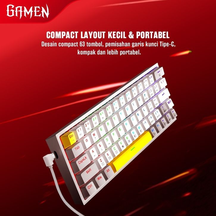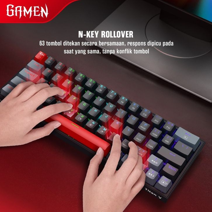 GAMEN TITAN V Keyboard Gaming Mechanical Compact and Portable Keyboard 63 Keys 60% Layout Garansi