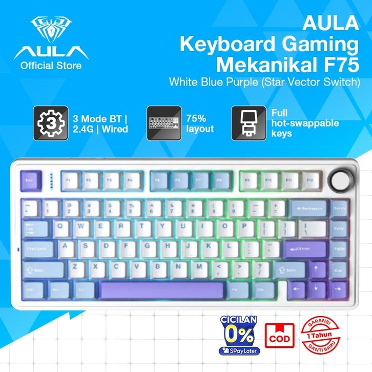 AULA Mechanical Keyboard Gaming - 75% Gaming Layout Wireless & Wired Star Vector Switch RGB Backlit