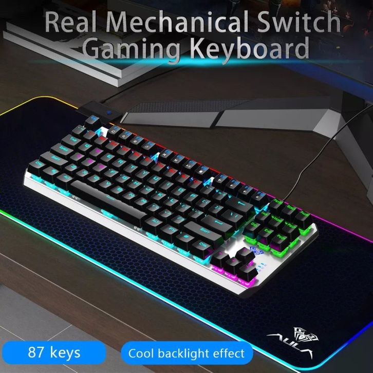 Keyboard Gaming Mechanical AULA F-2067 TKL - K-RGD Blue Switch-New RGB Rainbow LED - 87 Keys Metal