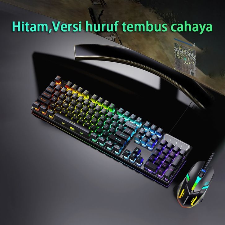 E-Sports Gaming Keyboard/Kombo Keyboard dan Mouse Gaming dengan Lampu RGB/Termasuk Mouse dan