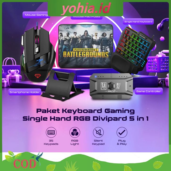 Paket Keyboard Gaming Single Hand RGB Divipard 5in1 - Keyboard Gaming + Mouse Set MK500