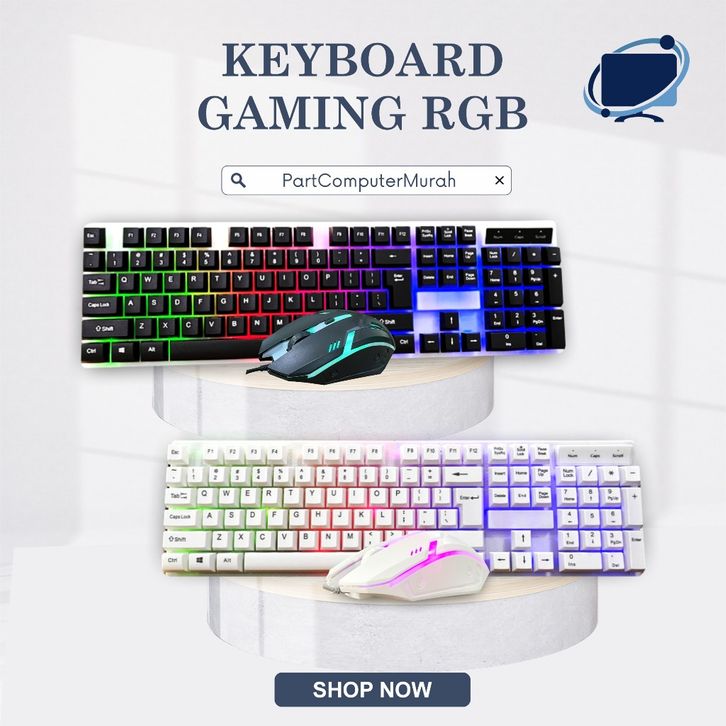Keyboard & Mouse Gaming RGB LED Backlit Semi Mechanical USB Kabel Untuk Laptop PC Desain Ergonomis