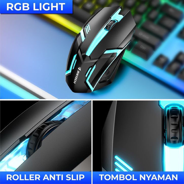 JERTECH Keyboard Mouse Gaming Kabel KM170 Full LED Backlight 104 Keys