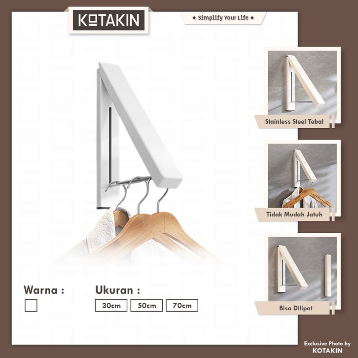 KOTAKIN Gantungan Baju Lipat Tempel Dinding Hanger Pakaian Rak Jemuran Stainless Indoor Serbaguna