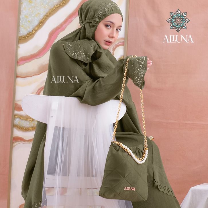 ALLUNA - Mukena Dewasa Umroh Berlengan Menutup Dagu Lasercut Helwah Series