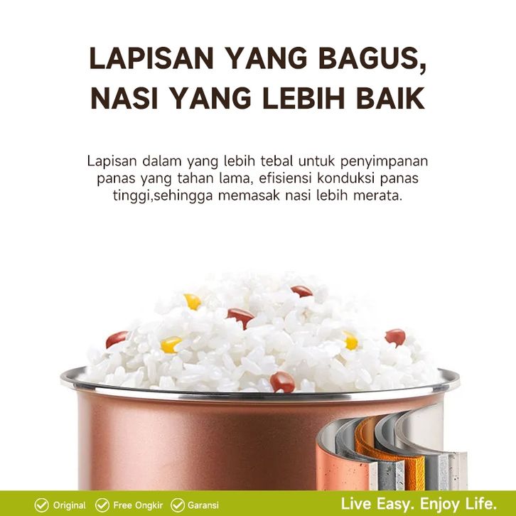 MAIMEITE Rice Cooker Low Carbo Low Sugar Ceramic Coated Teflon Free 400 Low Watt 3L Digital Hemat Listrik