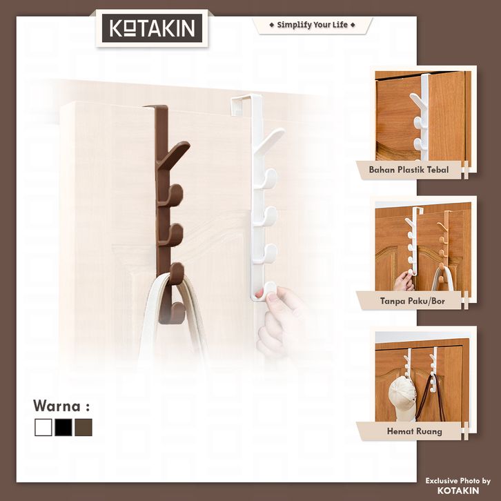 KOTAKIN Gantungan Baju Belakang Pintu Cantolan 5 Kait Pakaian Topi Tanpa Paku Steel Cloth Hanger Multifungsi
