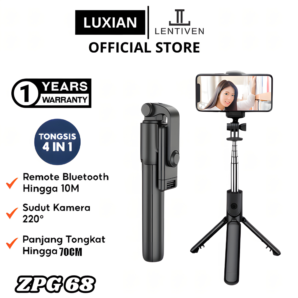 LUXIAN LENTIVEN Tongsis Selfie Tripod Bluetooth 4 In 1 Selfie Stick Portable With Remote Control Flexible Lampu LED Self