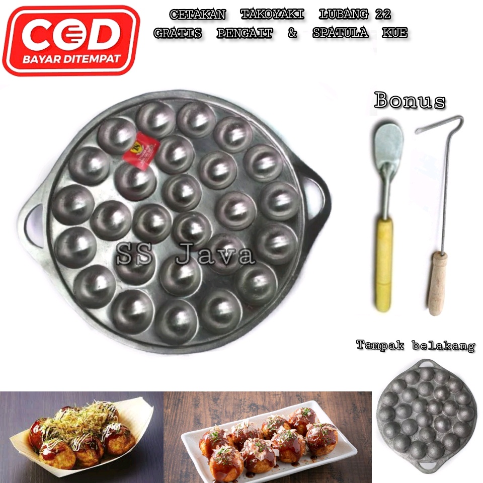 Cetakan Takoyaki Cetakan Kue Takoyaki Baklor Maklor Cilor Telur Puyuh 22 Lubang Gratis Pengait Dan Spatula Kue