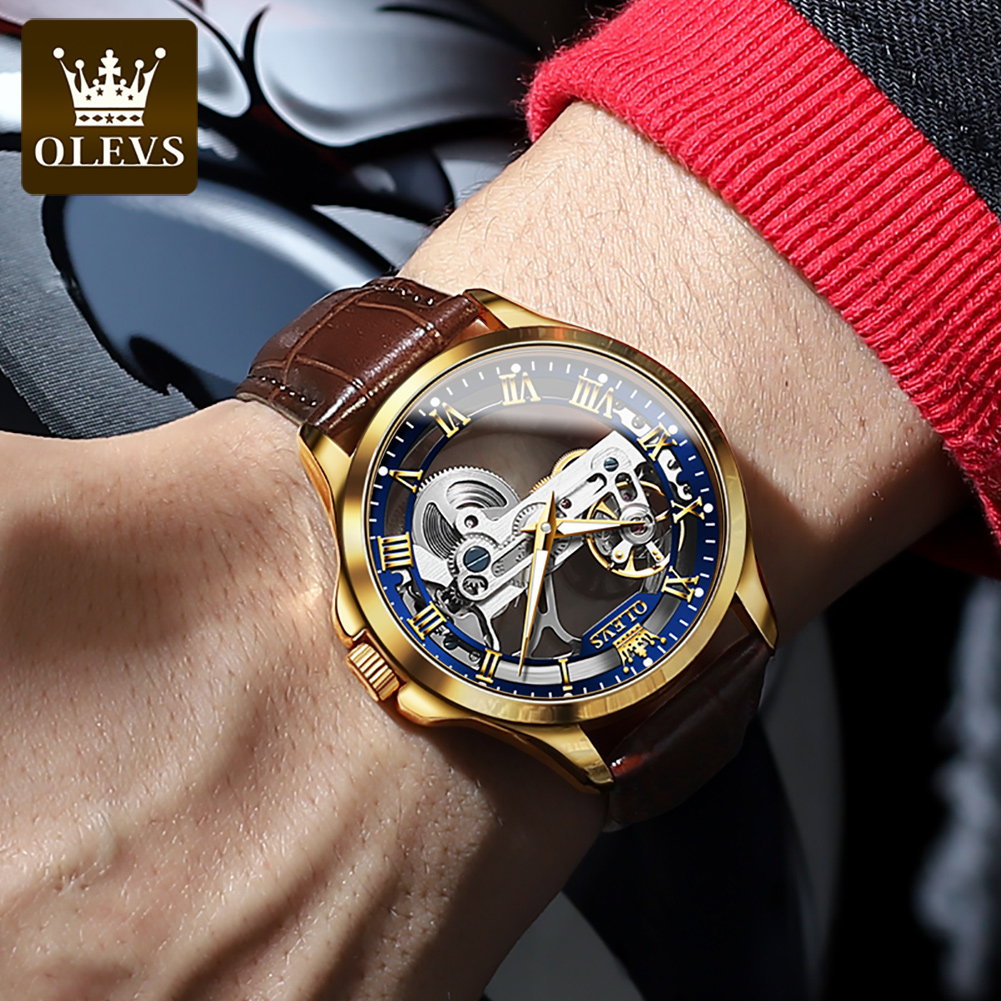 OLEVS Jam Tangan Pria Anti Air Original Automatic Mechanical Luminous Fashion Luxury Kulit Tali Asli Men Watch Model 6661