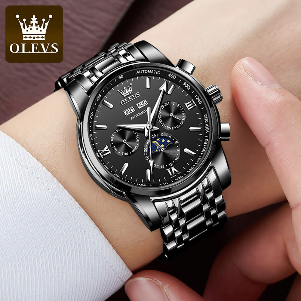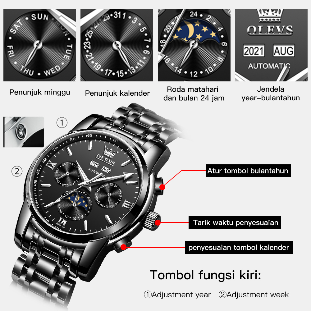 OLEVS Jam Tangan Automatic Pria Anti Air Original Tahan Keren Led Terbaru Luxury Stainless Watch Men Tanggal Otomatis
