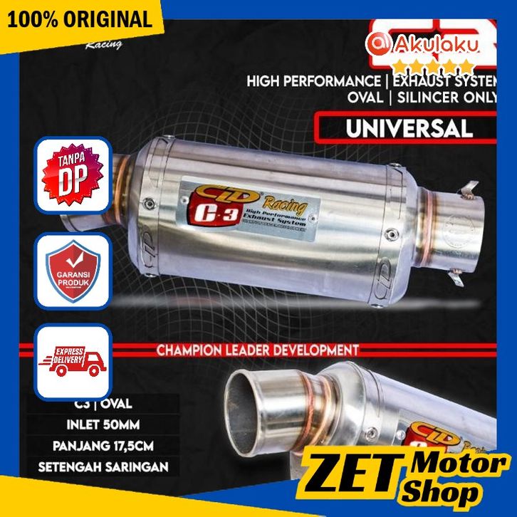 SILENCER KNALPOT ONLY CLD RACING TYPE C3 OVAL 17,5CM INLET 50MMZET MOTOR SHOP / VARIASI OTOMOTIF ORIGINAL / TWO STROKE O