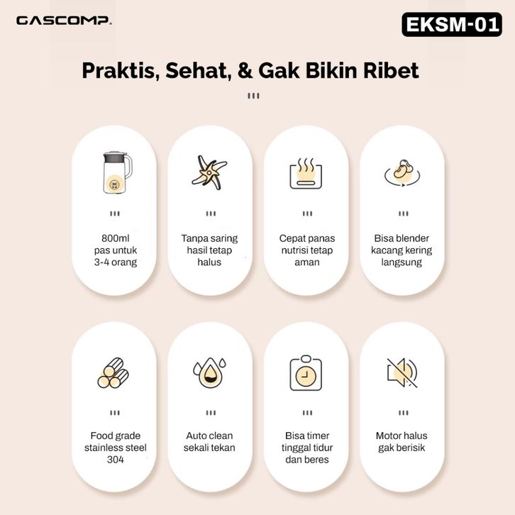 GASCOMP Soymilk Maker Digital 800mili 6 in 1 Multifungsi | Mesin Susu Kedelai & Almond | Pembuat Susu Kacang Otomatis