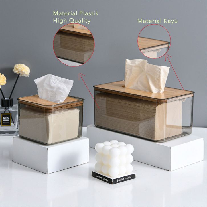 Tempat TISSU KOTAK Aesthetic - Wadah Tisu Box Kayu Transparan