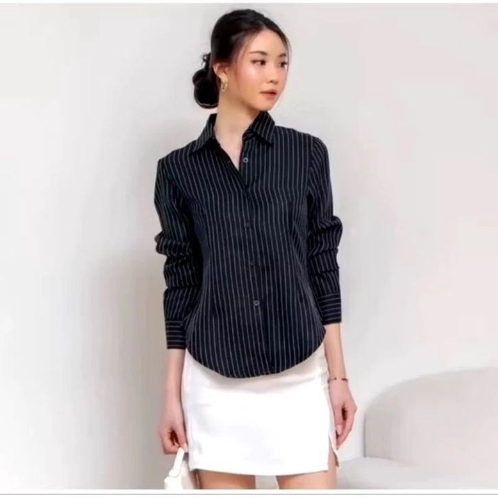Luna Shirt Fitted Salur Stripe Kemeja Wanita Salur Basic Casual