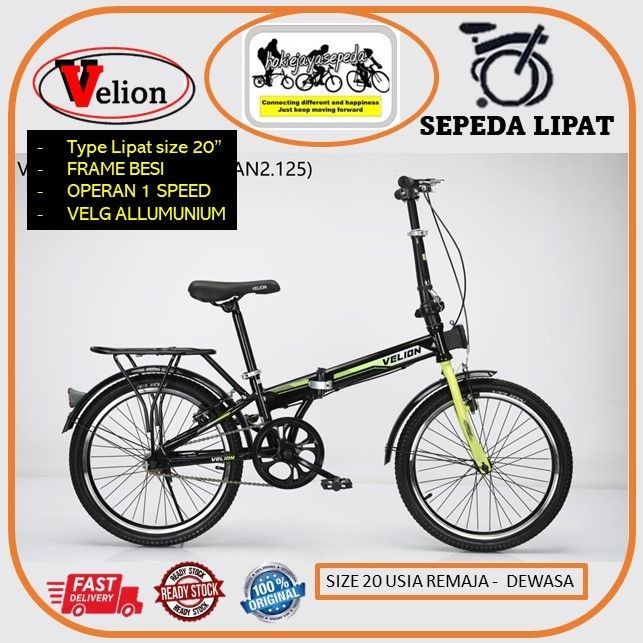 Sepeda Lipat VELION Single Speed FOLDING TERMURAH UNTUK REMAJA - DEWASA BONUS BUSA JOK