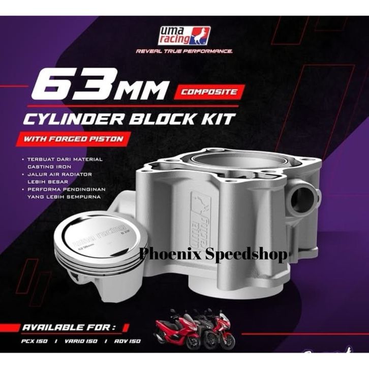 TERLARIS BLOK SEHER UMA RACING VARIO 150, PCX 150, ADV 150 UKURAN 63 PIN 14 PISTON FORGED