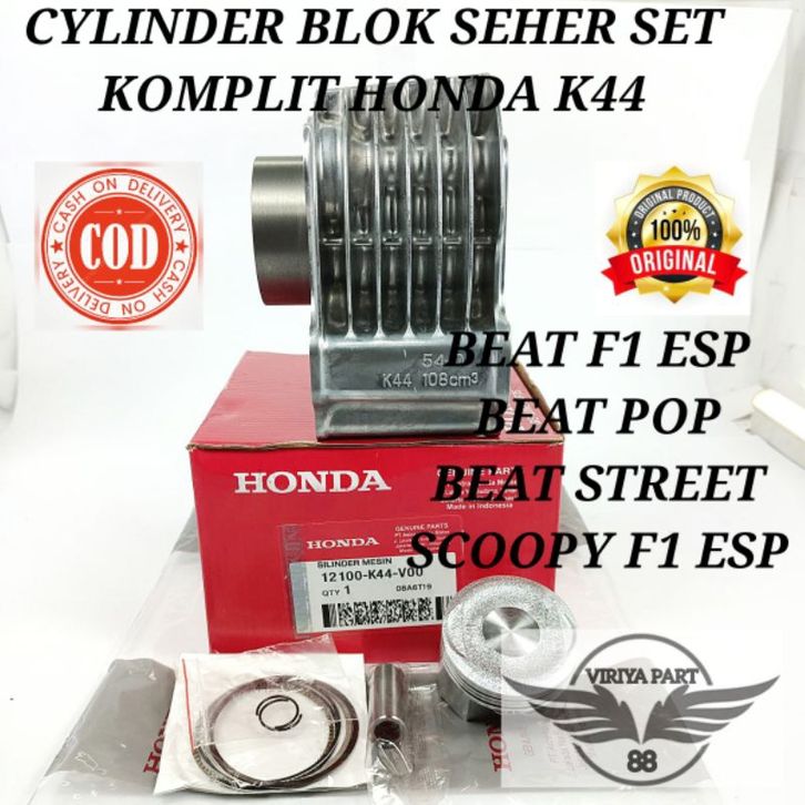 TERLARIS CYLINDER BLOK SEHER PISTON RING KOMPLIT HONDA K44 KUALITAS ORIGINAL HONDA AHM PRESISI TINGGAL PASANG/BEAT F1 ES