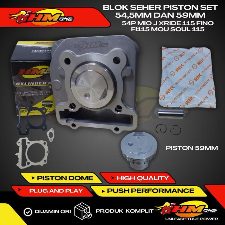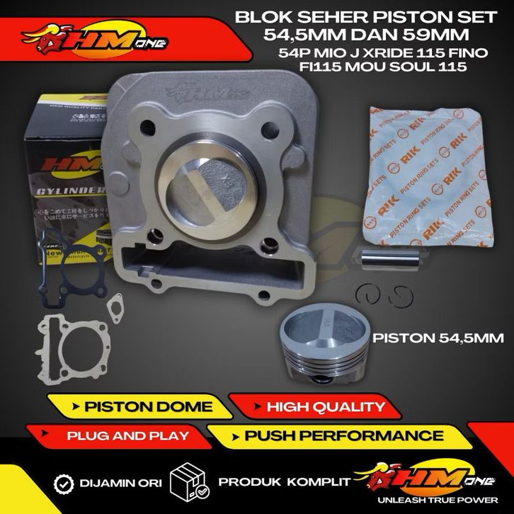 TERLARIS HMONE BLOK SEHER BORE UP 54.5MM 59MM 54P MIO J XRIDE 115 FINO 115 MIO SOUL 115 BORING BOR UP PISTON RING RIK CA