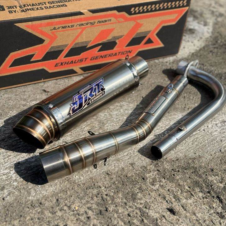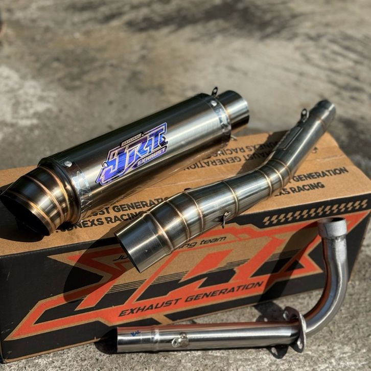 TERLARIS KNALPOT RACING TIPE JR-04 EMBLEM TITANIUM ORIGINAL JRT EXHAUST KARISMA, JUPITER, VEGA, GRAND, REVO ABS, SUPRA X